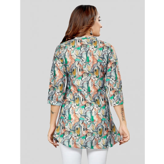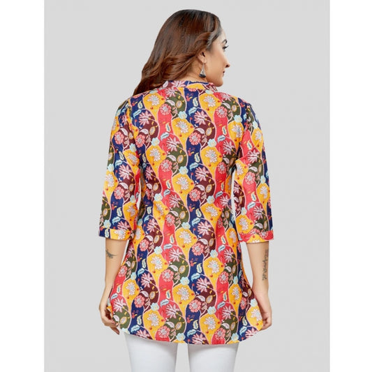 Generic Women's Rayon Collared Neck 3/4 Sleeves Short Top (Multicolor)