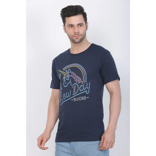Generic Men's Cotton Jersey Round Neck Printed Tshirt (Navy)