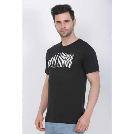Generic Men's Cotton Jersey V Neck Printed Tshirt (Black)