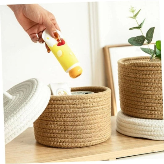 Generic Cotton Box Beige lid Pack of 1 Storage Basket For Clothes (White)