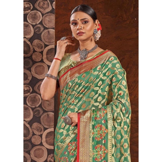 Generic Women's Organza Printed Saree With Unstitched Blouse (Sea Green, 5-6 Mtrs)