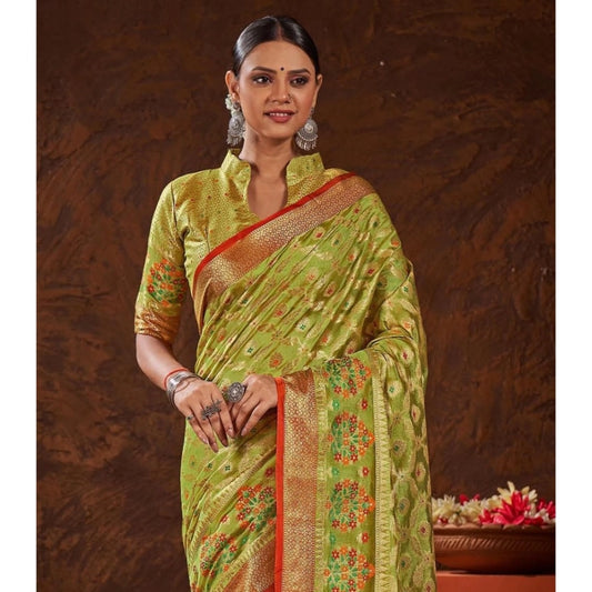 Generic Women's Organza Printed Saree With Unstitched Blouse (Parrot Green, 5-6 Mtrs)