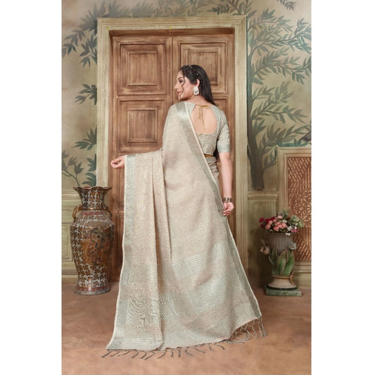 Generic Women's Organza Printed Saree With Unstitched Blouse (Grey, 5-6 Mtrs)