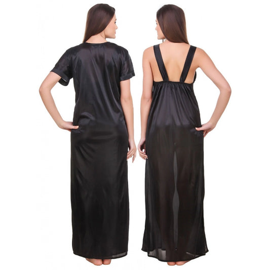 Women's Satin 2 PCs Set of Nighty And Wrap Gown with Half Sleeve(Color: Black, Neck Type: Sweatheart Neck)