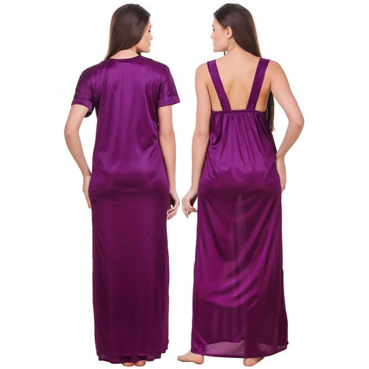 Women's Satin 2 PCs Set of Nighty And Wrap Gown with Half Sleeve(Color: Purple, Neck Type: Sweatheart Neck)