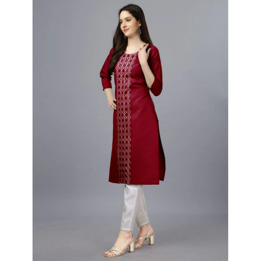 Generic Women's Casual 3-4 th Sleeve Embroidery Cotton Kurti (Maroon)