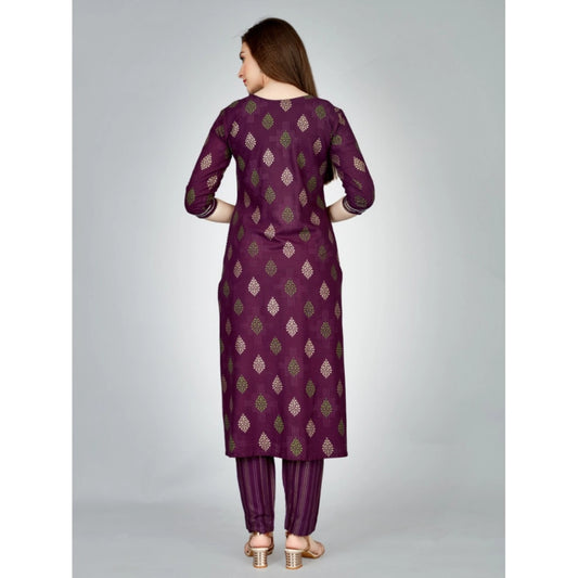 Generic Women's Casual 3-4 th Sleeve Embroidery Rayon Kurti Pant Set (Purple)