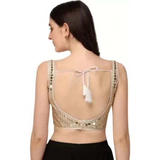 Generic Women's Embriodered Cotton Lycra Padded Readymade Blouse (Navy Blue, Free Size)