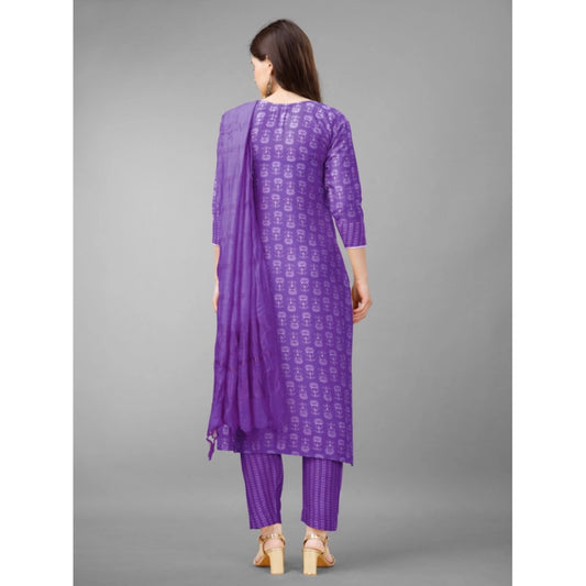 Generic Women's Casual 3-4 th Sleeve Embroidery Rayon Kurti Pant Dupatta Set (Purple)