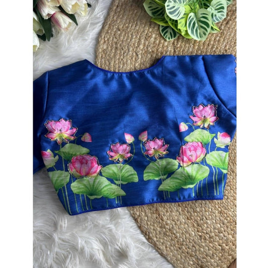 Generic Women's Silk Hand Work Round Neck Short Sleeve Readymade Blouse (Blue, Free Size)