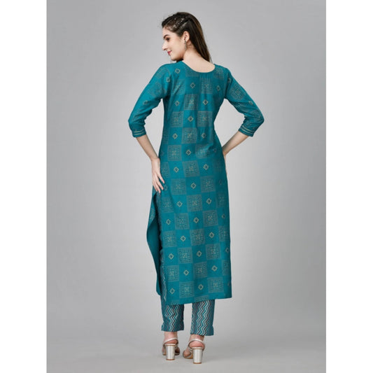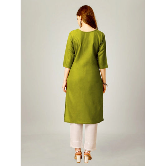 Generic Women's Casual 3-4 th Sleeve Embroidery Rayon Kurti Pant Set (Green)
