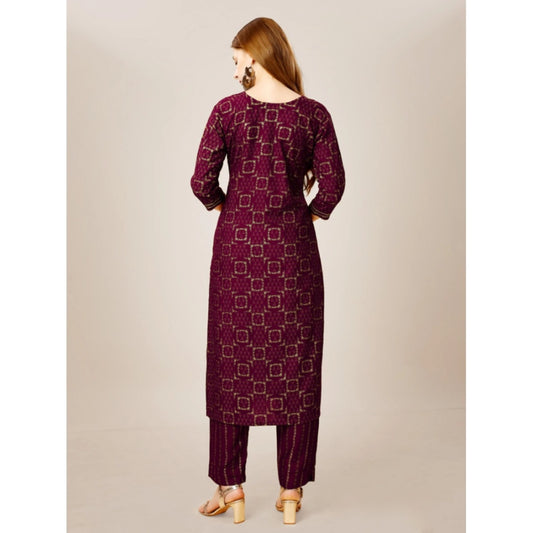 Generic Women's Casual 3-4 th Sleeve Embroidery Rayon Kurti Pant Set (Purple)