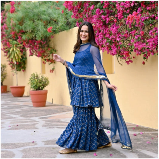 Generic Women's Casual Sleeveless Printed Cotton Kurti Set (Blue)