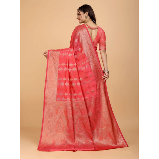 Generic Women's Organza Woven Saree With Unstitched Blouse (Pink, 5.5Mtrs)