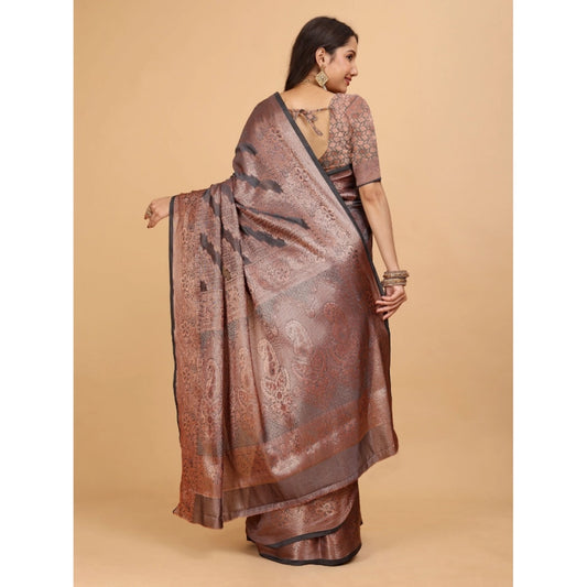 Generic Women's Organza Woven Saree With Unstitched Blouse (Brown, 5.5Mtrs)