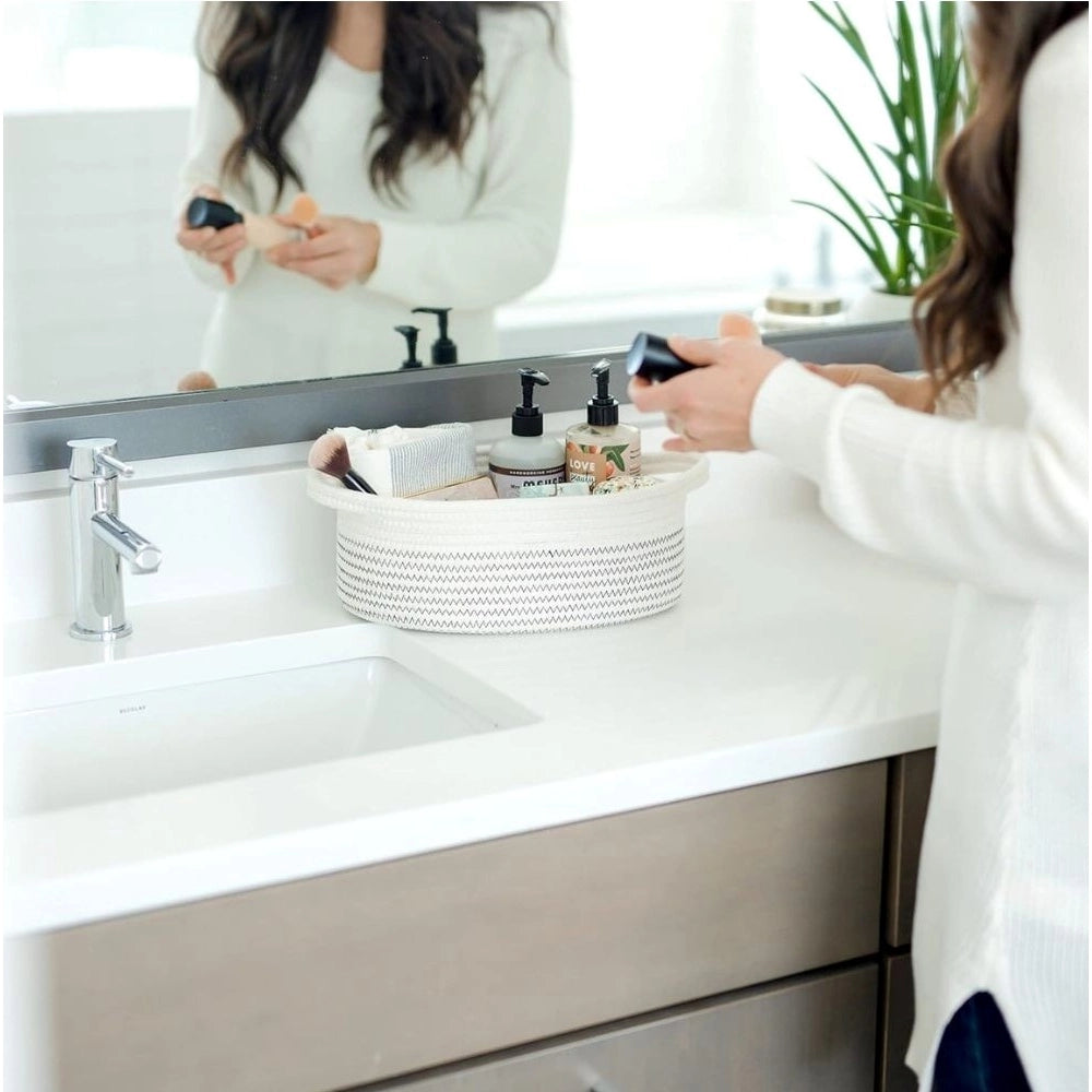 Generic Cotton Zigzag Oval Basket Pack of 3 Storage Basket For Clothes (White)