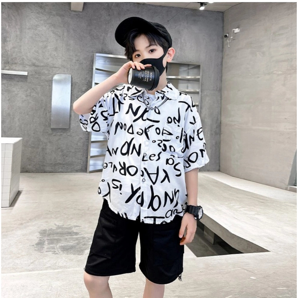 Generic Kid's Lycra Printed Casual wear Shirt And Shorts Set (White)