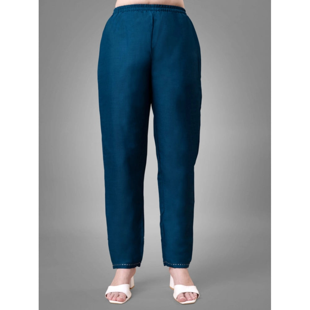 Generic Women's Casual 3-4 th Sleeve Embroidery Cotton Kurti Pant Dupatta Set (Blue )