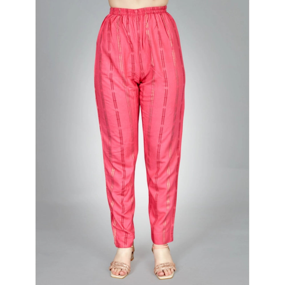 Generic Women's Casual 3-4 th Sleeve Embroidery Rayon Kurti Pant Set (Pink)