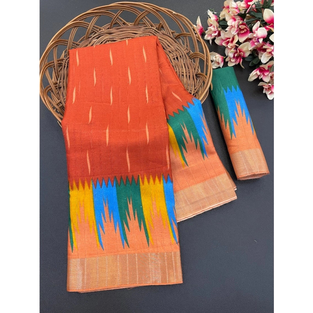 Women's Cotton Blend Printed Saree With Unstitched Blouse